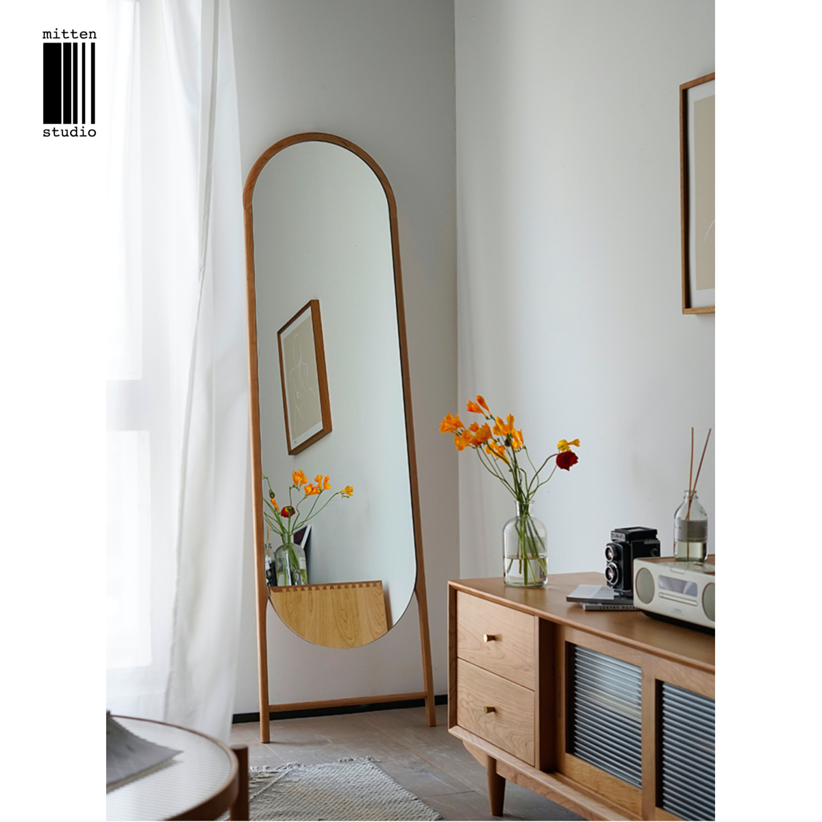 กระจกมินิมอลรุ่น Front Door จาก Mirror Décor ดีไซน์รูปทรงโค้งมน เนื้อกระจกวาวใส มาพร้อมฐานไม้สนคุณภาพดี ขนาดกว้าง 60 × สูง 165 ซม.จัดวางได้อย่างมั่นคง ให้ห้องนอนดูมีมิติ กว้างขวางและปลอดโปร่ง แต่งเข้าได้กับทุกสไตล์ห้อง