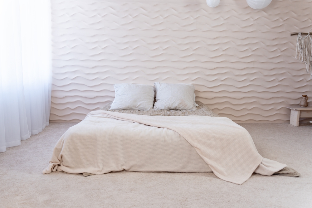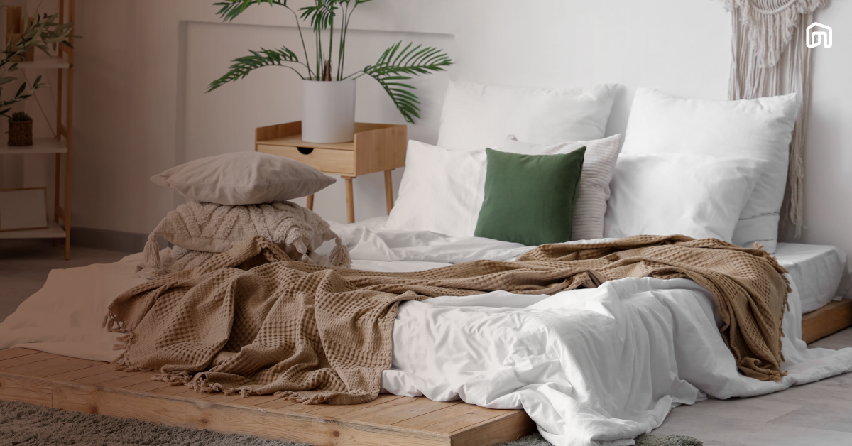 - ห้องนอนไม่มีเตียงหรือ Floor Bed มักตกแต่งในรูปแบบที่เรียบง่าย ให้พื้นที่ดูกว้างขวาง โล่งสบาย รวมถึงเน้นการสร้างบรรยากาศให้มีความอบอุ่น ผ่อนคลาย เหมาะกับการพักผ่อน ตอบโจทย์ไลฟ์สไตล์ชีวิตแบบง่ายๆ และห้องที่มีพื้นที่จำกัดได้อย่างลงตัว