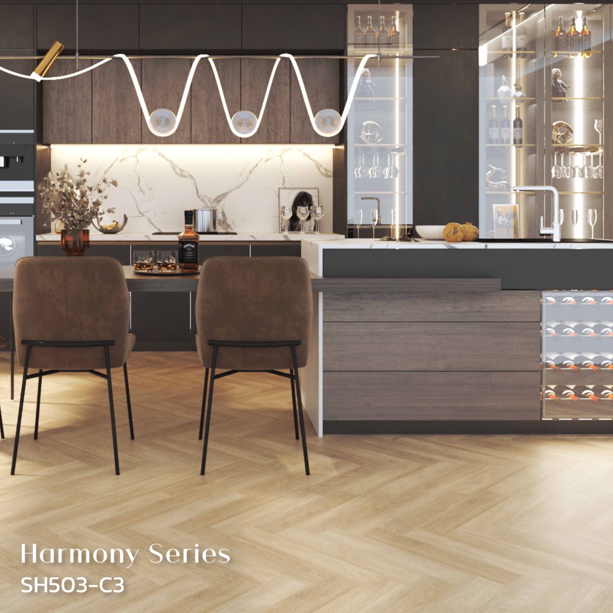 พื้น SPC ลายก้างปลา รุ่น SH503-C3 จาก Rococo สัมผัสสบายเท้า ดูดซับเสียงได้ดี