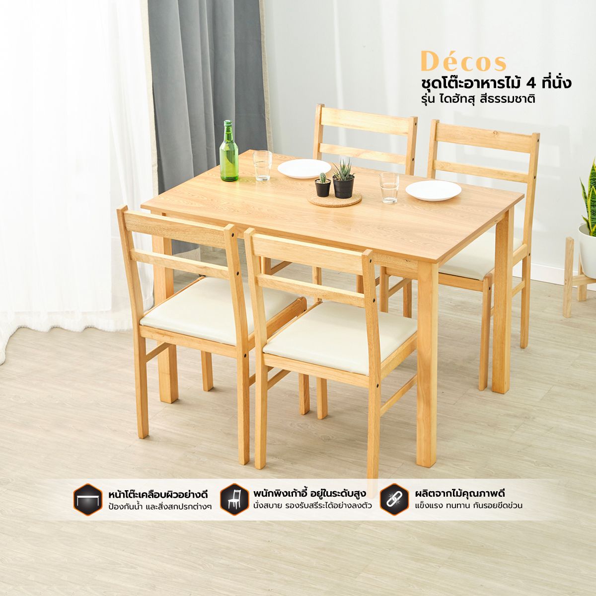 ชุดโต๊ะอาหารไม้ 4 ที่นั่ง รุ่นไดฮัทสุ จาก DECOS สีไม้ธรรมชาติ ให้มู้ดอบอุ่น ผ่อนคลาย