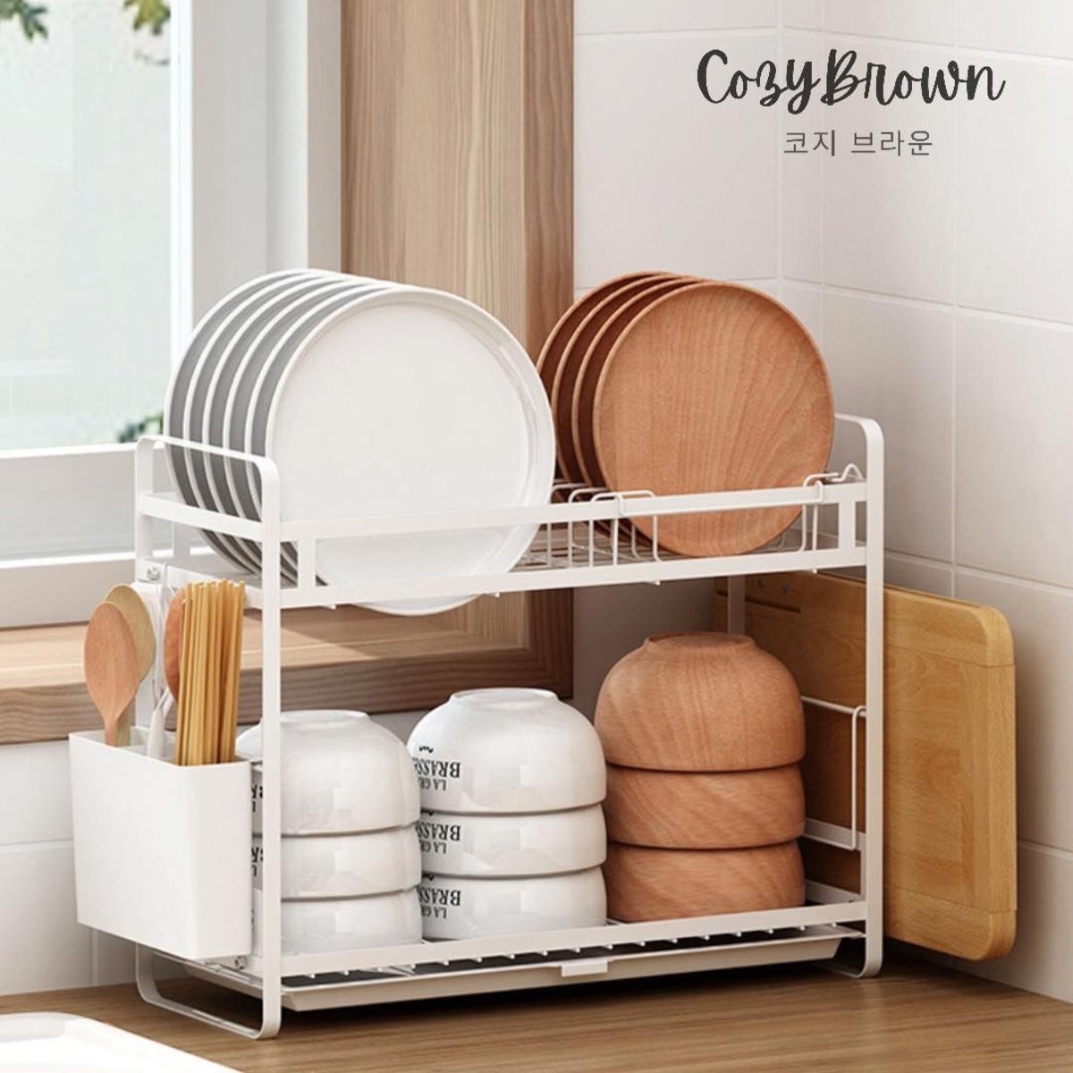 ชั้นพักจานสไตล์มินิมอล รุ่น TP0269 จาก Cozybrown จัดวางจานชามได้แบบจัดเต็ม 2 ชั้น พร้อมช่องสำหรับใส่ช้อนส้อมเป็นระเบียบ มาในดีไซน์สีขาว แมตซ์ง่ายกับห้องครัวสไตล์มินิมอล ตัวโครงสร้างแข็งแรง รับน้ำหนักได้มาก เคลือบกันสนิมอย่างดี