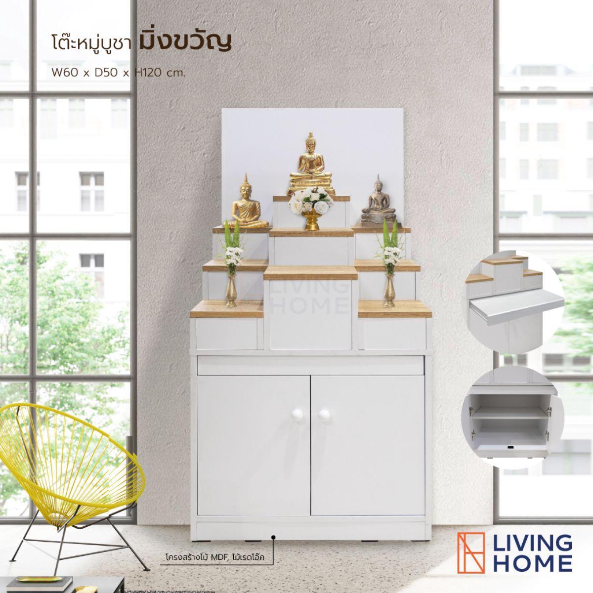2. โต๊ะหมู่บูชา รุ่นมิ่งขวัญ จาก Livinghome Furniture ดีไซน์มินิมอล ลงตัวทุกมุมบ้าน