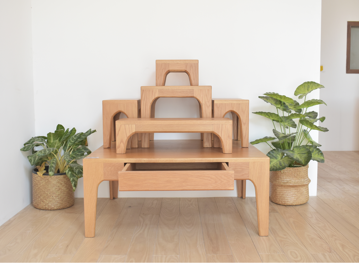 โต๊ะหมู่บูชา 5 หมู่ จาก IWORKTOP ผลิตจากไม้แท้ทั้งตัว มีให้เลือกทั้งไม้โอ๊ค และไม้แอช เคลือบยูรีเทนถึง 3 ชั้น ให้เนื้อไม้มีความเงางาม ลวดลายชัด ทนน้ำ ทำความสะอาดง่าย ไม่เป็นเชื้อรา พร้อมลิ้นชักเก็บของขนาดใหญ่ให้
