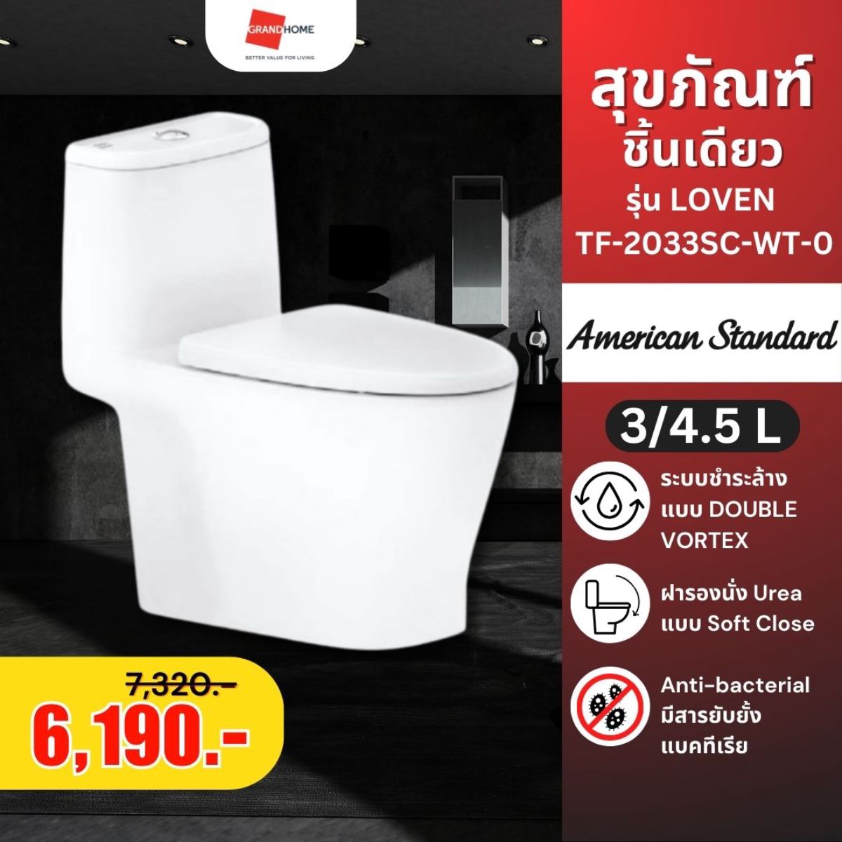 โถสุขภัณฑ์ชิ้นเดียว รุ่น LOVEN TF-2033SC-WT-0 จาก AMERICAN STANDARD วัสดุคุณภาพสูง ไร้คราบเหลือง