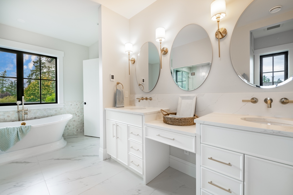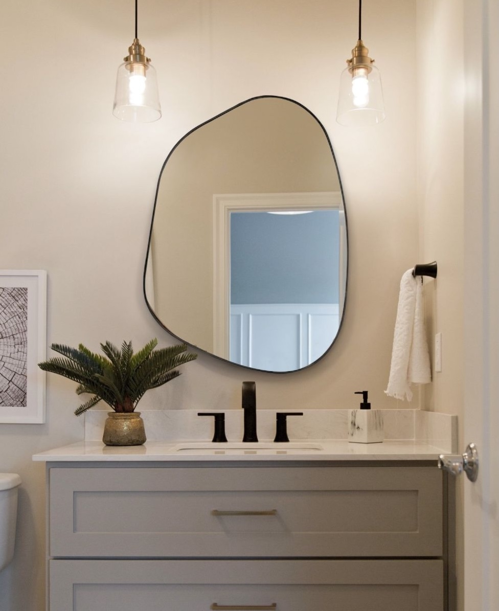 1. เลือกใช้เฟอร์นิเจอร์ทรงโค้งมน เสริมห้องน้ำให้ดูโมเดิร์น ทันสมัย