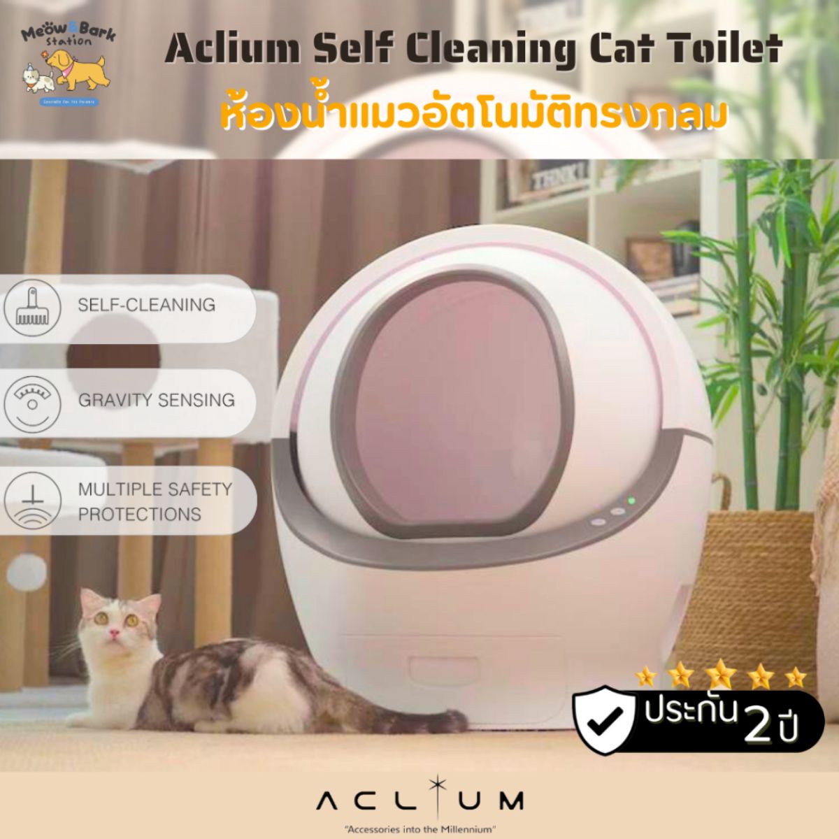 6. Aclium ห้องน้ำแมวอัตโนมัติ เครื่องใหญ่พิเศษ รองรับแมวหนักสุด 14 กก.
