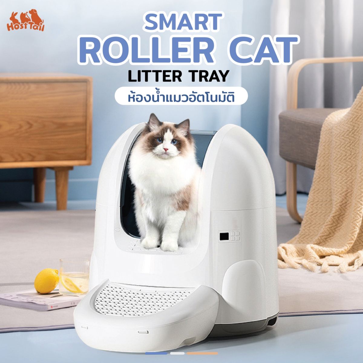 ทางเข้าเปิดกว้าง เจ้าเหมียวเข้า-ออกสบาย ขับถ่ายสะดวก HostTail ห้องน้ำแมวอัตโนมัติ ควบคุมผ่านแอปพลิเคชัน จะตั้งค่า สั่งงาน หรือแจ้งเตือน ก็สะดวกรวดเร็ว มาพร้อมระบบเซนเซอร์แบบ 360 องศา มั่นใจได้ในความปลอดภัย ลดกลิ่นเหม็นบด้วยระบบฆ่าเชื้อ เพิ่มความสะอาดด้วยบันไดเสริม เพื่อตักทรายตอนน้องเหมียวออกจากห้องน้ำ เก็บของเสียได้ถึง 12 ลิตร ส่วนบ้านไหนเลี้ยงเจ้านายดีก็ไม่ต้องกังวล เพราะรองรับน้ำหนักแมวได้ถึง 12.5 กิโลกรัม