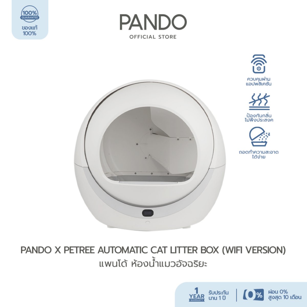 ใครเพิ่งมีลูกแมวจอมซนตัวใหม่จะเลือกห้องน้ำแมวอัตโนมัติยี่ห้อไหนดีถึงจะปลอดภัย เหมาะกับน้องแมวพันธุ์ขาสั้น ต้องห้องน้ำเเมวอัตโนมัติ PANDO ด้วยปากทางเข้าที่สูงจากพื้นเพียง 17 เซนติเมตร และทางเข้ากว้างพิเศษถึง 36 เซนติเมตร พร้อมตะแกรงดักทรายแมวบริเวณทางเข้า ช่วยลดทรายกระเด็นได้ดี ปลอดภัยขั้นสุดด้วยดีไซน์ไร้จุดตัดและเซนเซอร์น้ำหนัก 4 จุด หยุดการทำงานหากตรวจพบน้องแมว แถมบริเวณถังเก็บของเสียยังมีเซนเซอร์อินฟราเรดที่ใช้สำหรับแจ้งเตือนผ่านแอปเมื่อถึงเวลาเก็บก้อนทรายไปทิ้ง โดยที่ทาสไม่ต้องเปิดเช็กให้เสียเวลา