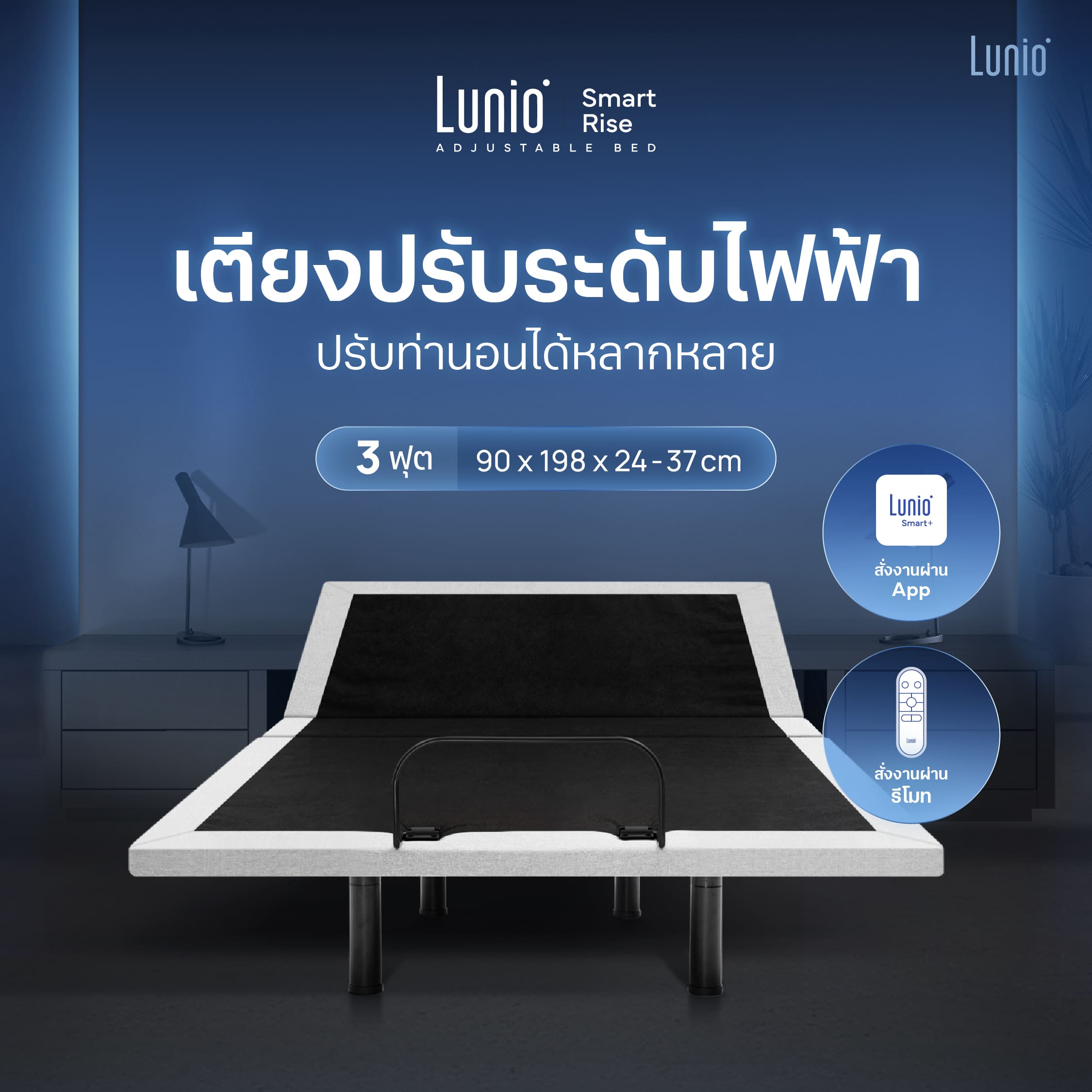 ภาพ : Lunio Smart Rise เตียงปรับระดับไฟฟ้า ขนาด 3 ฟุต