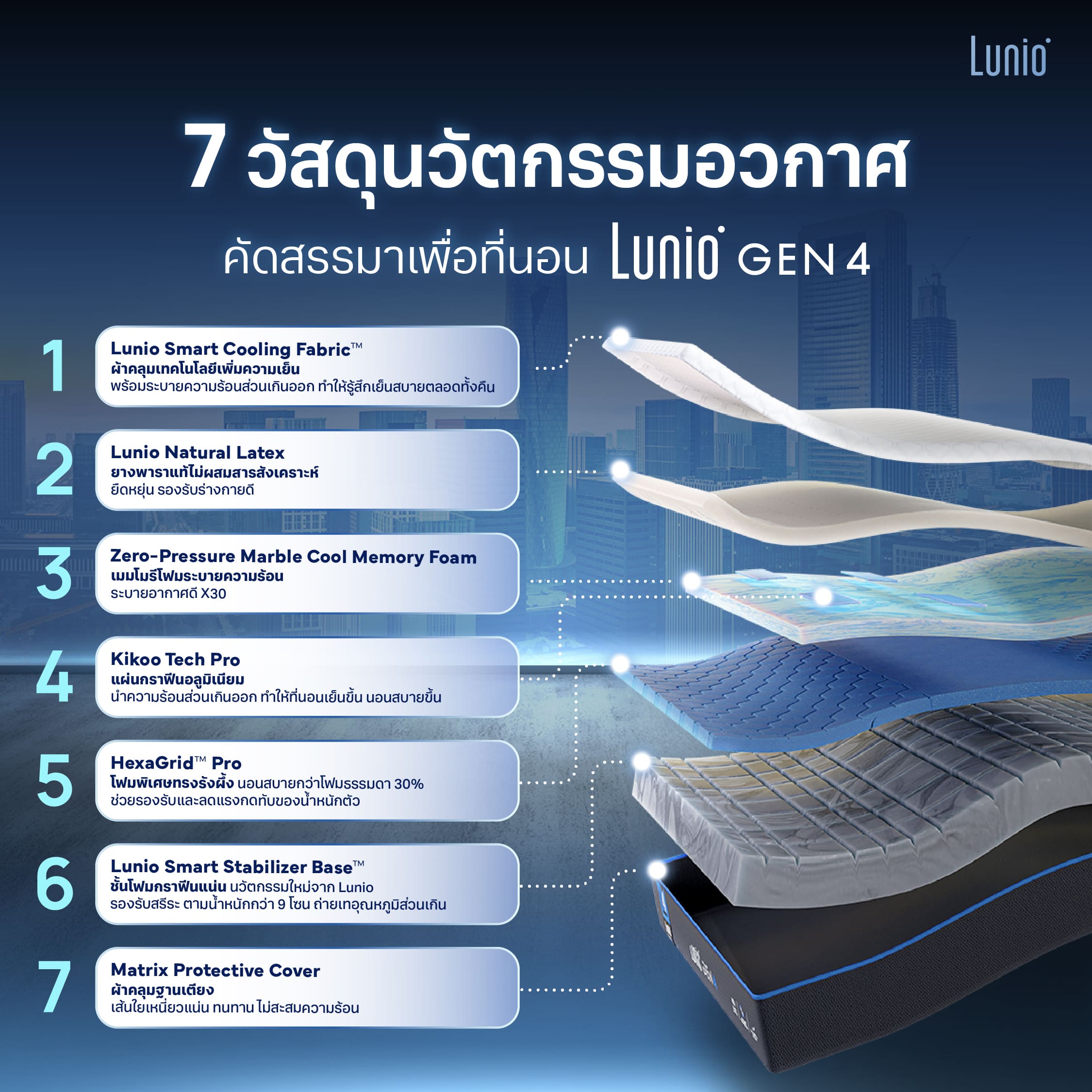 ภาพ : วัสดุ 7 ชั้นของที่นอน Lunio Gen 4