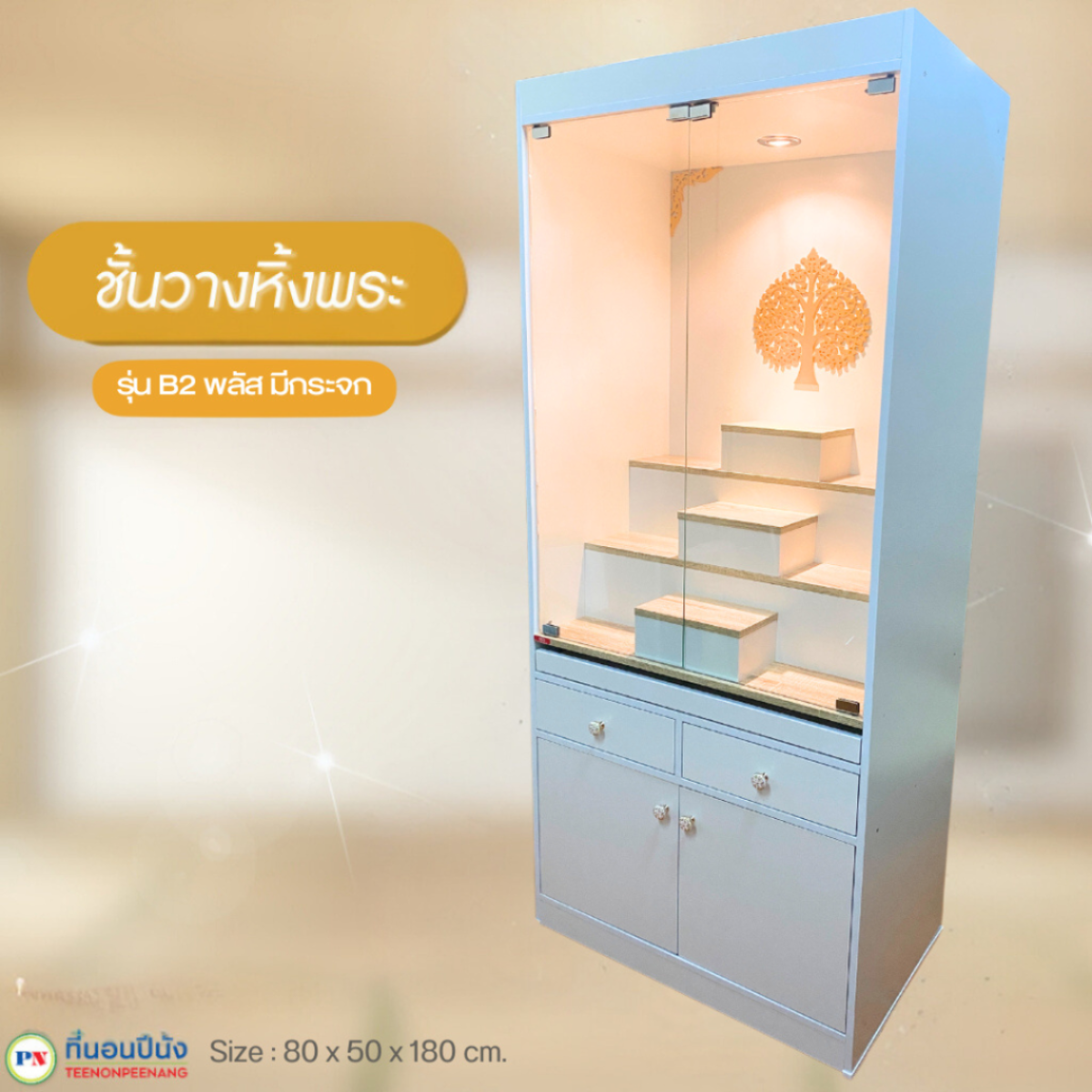 2. โต๊ะหมู่บูชาโมเดิร์น รุ่น B2 พลัส จาก ที่นอนปีนัง มีกระจกป้องกันฝุ่นละออง