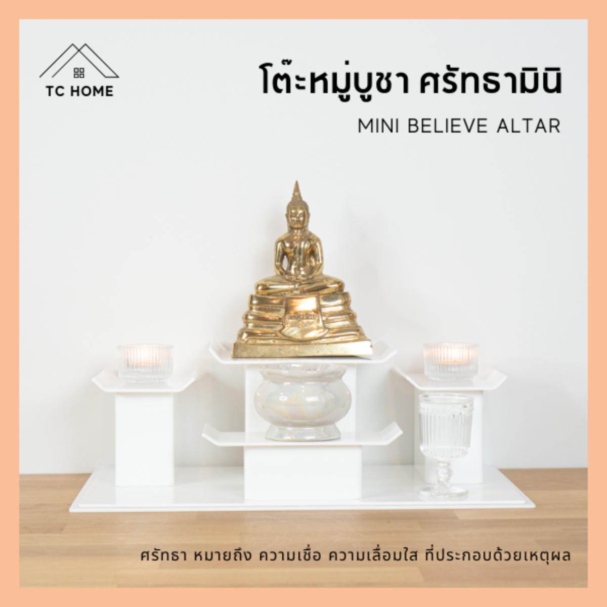 สายตกแต่งบ้านที่อยากเพิ่มมุมเล็กๆ เอาไว้ยึดเหนี่ยวจิตใจ เสริมความเป็นสิริมงคลในบ้าน ต้องโต๊ะหมู่บูชาศรัทธามินิ จาก TC HOME ดีไซน์สุดโมเดิร์น ขนาดกะทัดรัด ผลิตจากอะคริลิกหนา 3 มม. โดยแต่ละชิ้นสามารถรับน้ำหนักได้มากถึง 3 กก. แข็งแรงสูง ใช้งานได้นานโดยไม่เกิดคราบเหลือง จัดวางได้ลงตัวทุกมุมห้อง บอกเลยว่าถูกใจสายมินิมอลแน่นอน