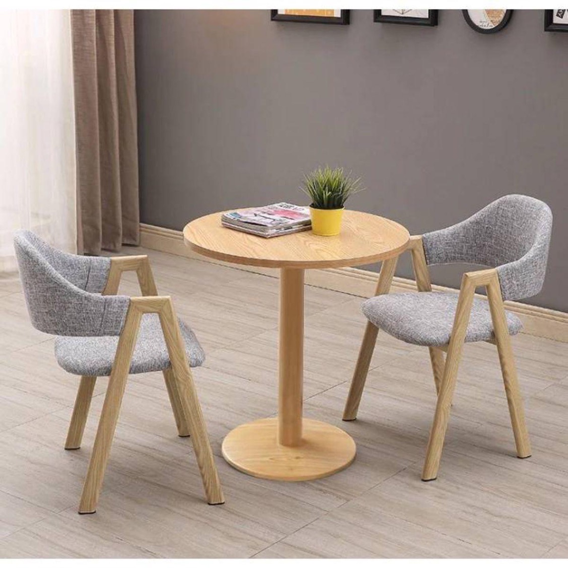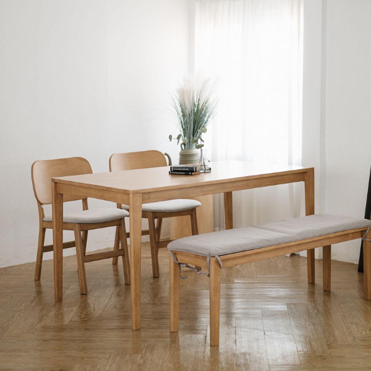 โต๊ะกินข้าวไซซ์กะทัดรัด 2 ที่นั่ง จาก Kawaree shop ดีไซน์โค้งมน ให้ทั้งความมินิมอลและความโมเดิร์น ทำจากไม้เนื้อแข็งที่มีความแข็งแรง ทนทาน และรองรับน้ำหนักได้ดี มาพร้อมเก้าอี้หุ้มเบาะผ้าสีเทา นั่งนานแค่ไหนก็ยังนุ่มสบาย ผสานเสน่ห์ของวัสดุไม้ธรรมชาติที่ช่วยสร้างบรรยากาศอบอุ่นและผ่อนคลาย เติมเต็มมื้ออาหารให้พิเศษยิ่งขึ้น
