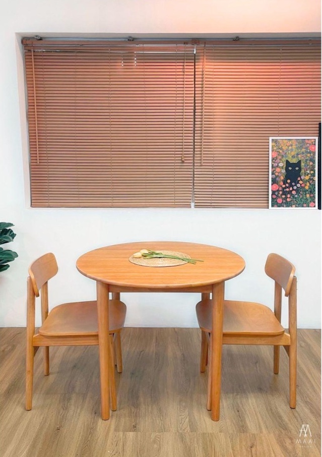 สร้างบรรยากาศภายในบ้านให้ Cozy ได้ง่าย ๆ ด้วยโต๊ะทานข้าวทรงกลม Maru Table จาก MAAI Design ขนาดกว้าง 90 x ยาว 90 เซนติเมตร โดดเด่นด้วยวัสดุไม้ยางพาราที่พ่นสีโอ๊คแบบทั้งชุด ออกแบบให้มีความมินิมอลสไตล์ญี่ปุ่น ให้ความละมุน สวยงามแบบไม่ซ้ำใคร แถมยังสบายใจหายห่วงเพราะมีการเคลือบสารกันเชื้อรา ปลวก และมอดไม้ ที่ไม่เป็นอันตรายต่อเด็ก
