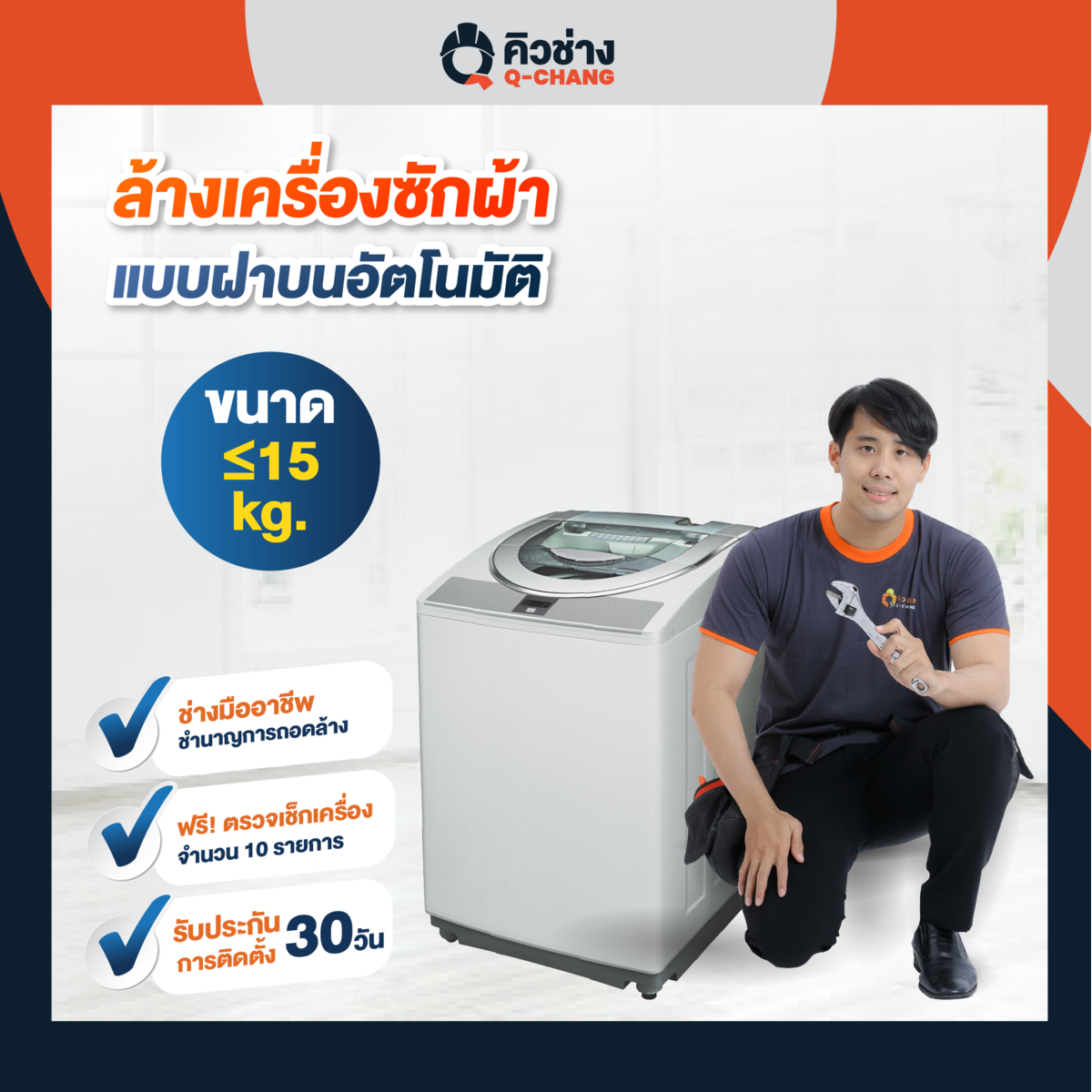 บริการล้างเครื่องซักผ้าฝาบนไม่เกิน 15 กก. จาก Q-CHANG ทีมช่างมืออาชีพ พร้อมฟรีตรวจเช็ก 10 รายการ