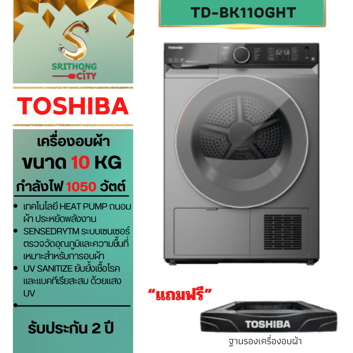 ประหยัดพลังงาน ไร้เสียงรบกวน ต้องเครื่องอบผ้าระบบ Heat Pump รุ่น TD-BK110GHT จาก TOSHIBA ขนาด 10 กก.