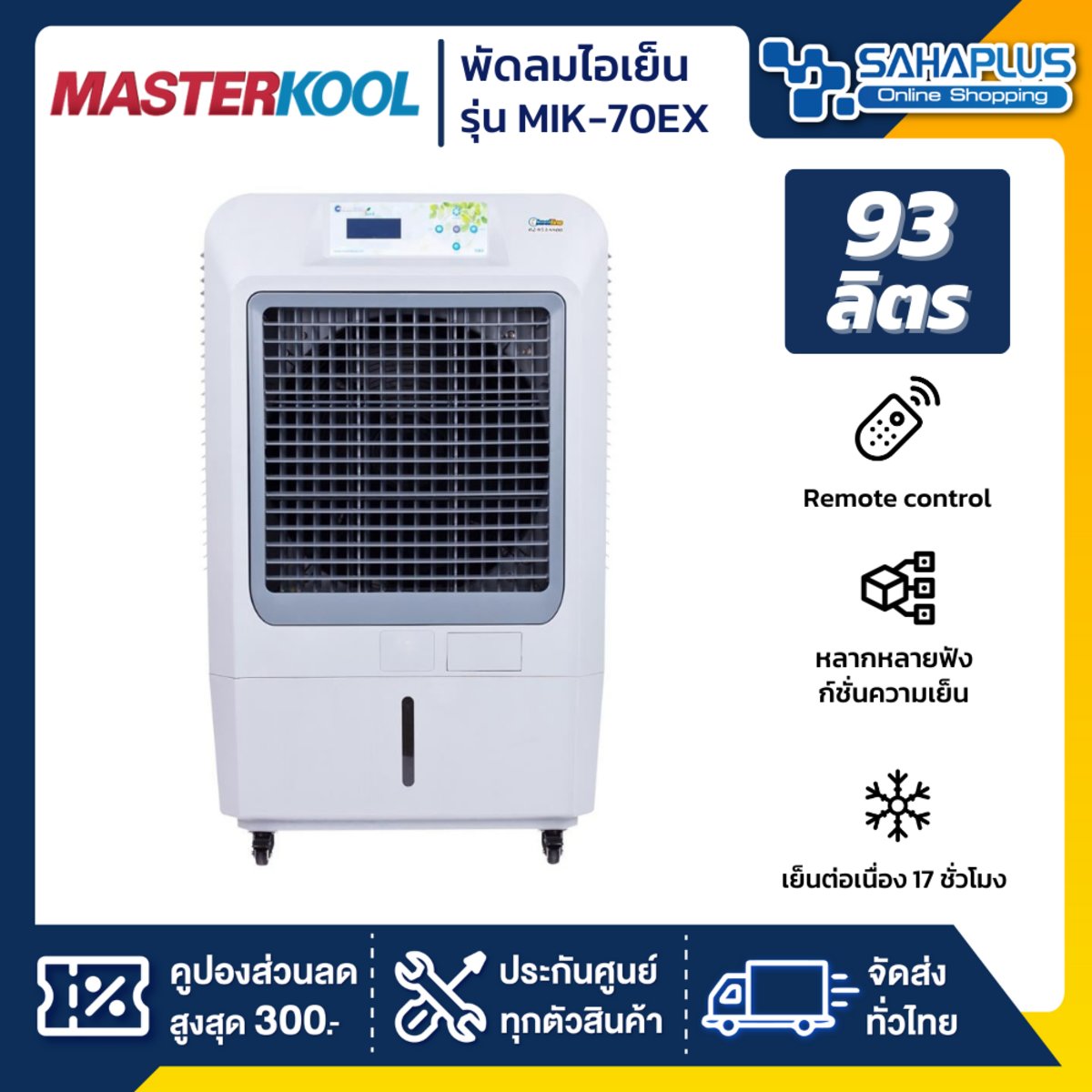 2. ลมเย็นสะอาด คลายร้อนได้ถึงใจ ต้องพัดลมไอเย็น รุ่น MIK-70EX ความจุถังน้ำ 93 ลิตร จาก Masterkool