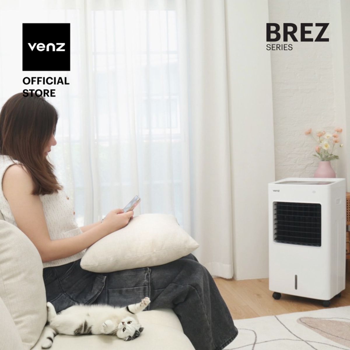 พัดลมไอเย็น ความจุถังน้ำ 8 ลิตร รุ่น BREZ Entry จาก Venz ควบคุมการใช้งานง่ายๆ ผ่านรีโมตคอนโทรล รับสัญญาณได้ไกลถึง 5 เมตร ไม่ต้องลุกไปที่ตัวเครื่องก็สามารถปรับค่าต่างๆ ได้สะดวก และรวดเร็ว มาพร้อมฟังก์ชันการทำงานที่เลือกได้ถึง 3 โหมด ได้แก่ Normal, Natural และ Sleep ทั้งยังสวิงได้มากถึง 110 องศา ปรับความเย็นได้มากถึง 4 ระดับ ปรับส่ายกระจายความเย็นได้ทุกทิศทาง จะซ้าย-ขวา หรือ บน-ล่าง จะอยู่ตรงไหนก็เย็นสดชื่น