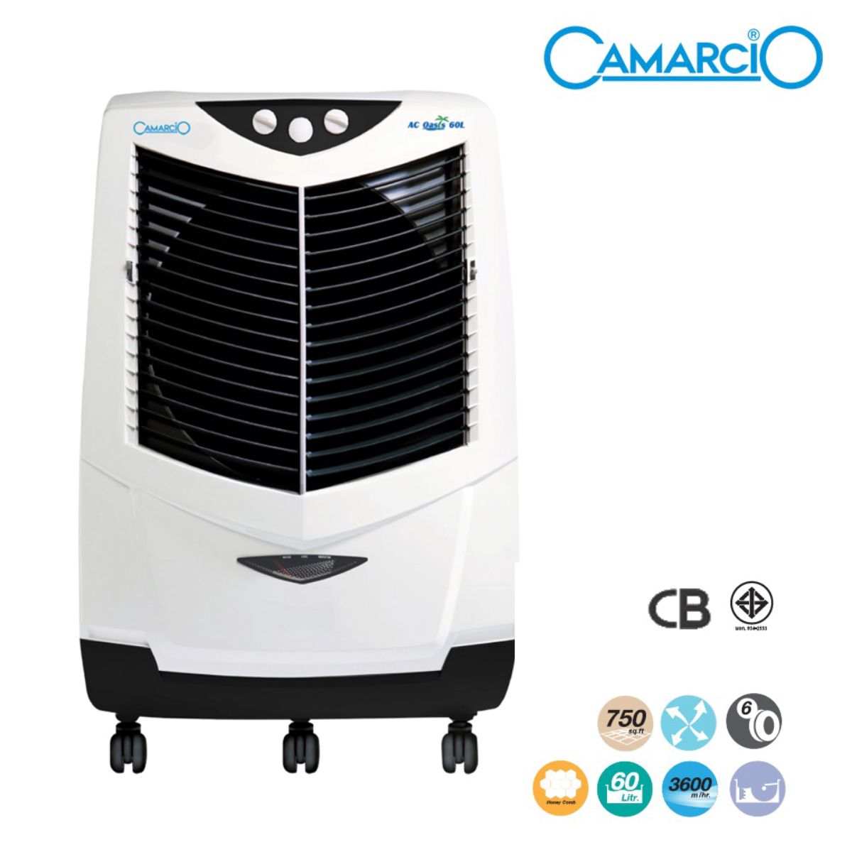 13. พัดลมไอเย็น รุ่น AC Oasis ความจุถังน้ำ 60 ลิตร จาก Camarcio ให้ลมเย็นสะอาด สดชื่น ด้วยระบบกรองอากาศแบบรังผึ้ง