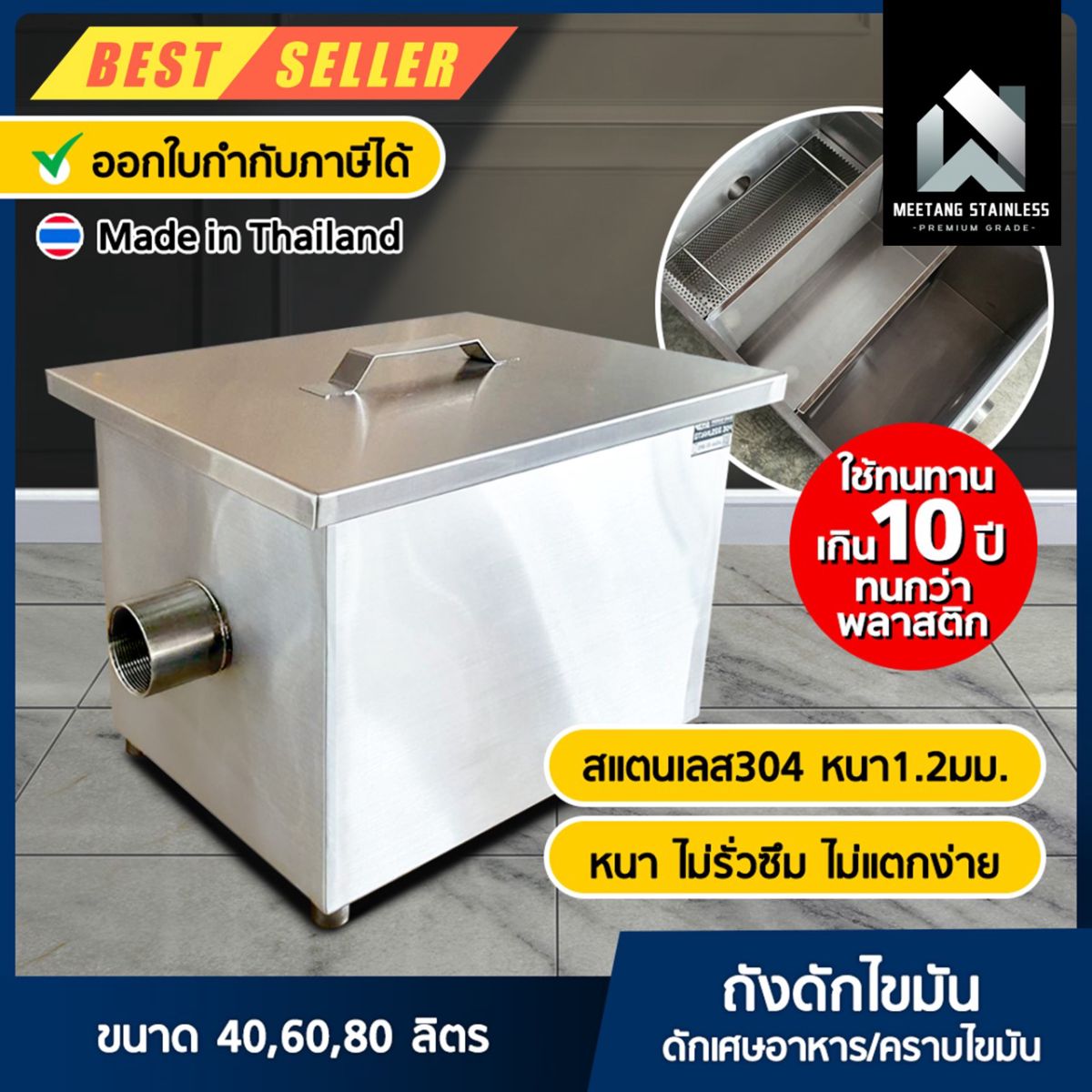 มีตังค์ ถังดักไขมันสแตนเลส ไซซ์ L เหมาะสำหรับการติดตั้งใต้ซิงค์ ผลิตจากสแตนเลสเกรด 304 แข็งแรง ไม่เป็นสนิม มาพร้อมช่องกรอง 3 ชั้น ถอดล้างง่าย มีขาตั้งช่วยยกตัวถัง ให้ทำความสะอาดพื้นด้านล่างได้สะดวก ใช้งานได้ยาวนาน มีให้เลือกหลายขนาด ตั้งแต่ 50 – 80 ลิตร ตามความเหมาะสมของพื้นที่และปริมาณการใช้งาน