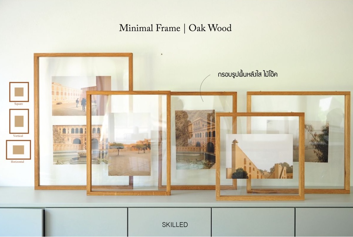 แต่งห้องนอนสไตล์มินิมอล พลาดไม่ได้กับกรอบรูปไม้จริง Collection Minimal Frame จาก SKILLED วัสดุจากไม้โอ๊ค ให้ลวดลายไม้ชัดเจน ดีไซน์พื้นหลังโปร่งใส พร้อม 2 รูปทรงให้เลือก ทั้งรูปทรงจตุรัส และรูปทรงผืนผ้า เอาไว้เก็บความทรงจำผ่านภาพถ่ายสวย ๆ เพิ่มความ Cozy ในห้องนอนมินิมอล