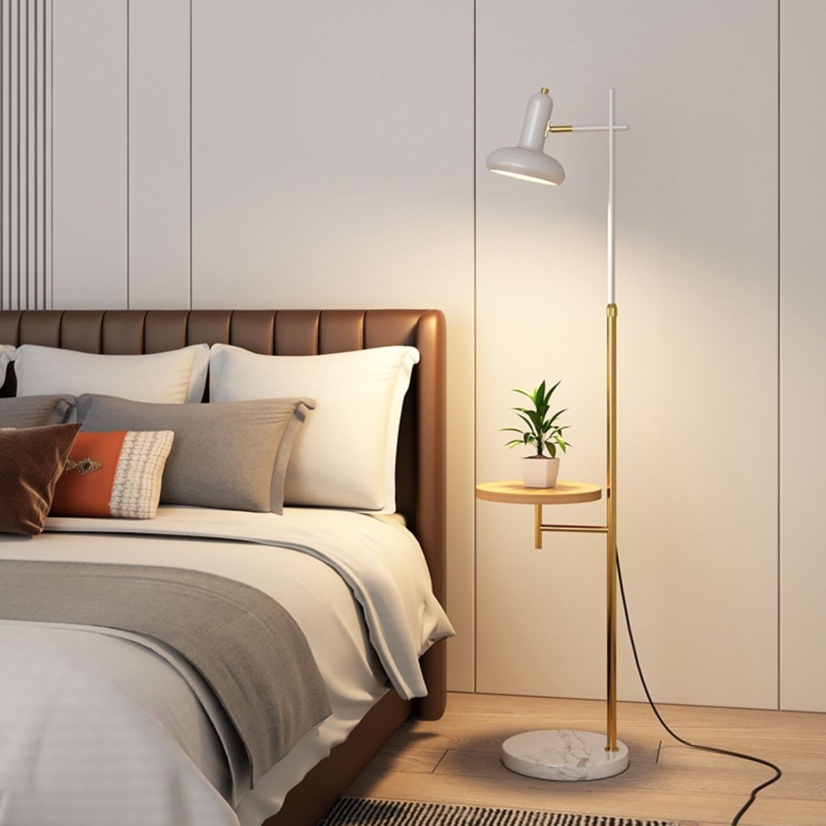 ไอเทมตกแต่งห้องนอนมินิมอลสวยๆ ต้องโคมไฟตั้งพื้น รุ่น L9100 จาก Neolight ดีไซน์เป็นโครงเหล็กชุบสีทอง สามารถหมุนได้ 360 องศา ให้แสงไฟนุ่มนวล มาพร้อมโต๊ะวางของอเนกประสงค์ทรงกลม วัสดุผิวไม้ เอาไว้วางของใช้ส่วนตัวก่อนนอนหรือของตกแต่งเล็กๆ