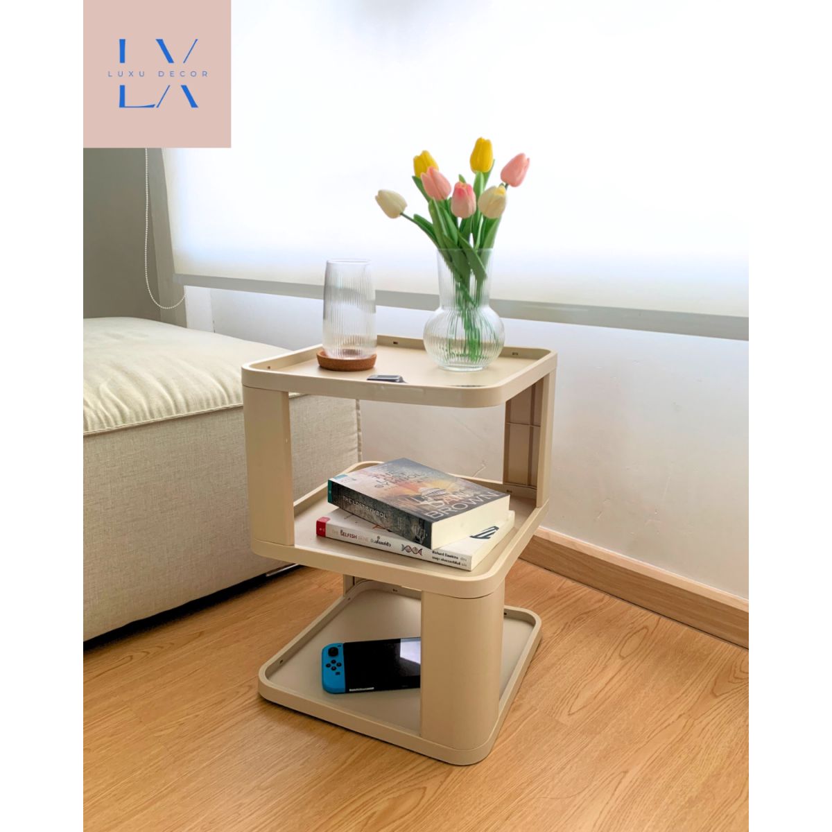 จัดวางมุมไหนก็สวย ใช้โชว์ของตกแต่ง วางหนังสือเล่มโปรด หรือตั้งแจกันดอกไม้น่ารัก ๆ ต้องโต๊ะข้างเตียง จาก LUXU DECOR ผลิตจากพลาสติกคุณภาพสูง ทนทาน น้ำหนักเบา มาพร้อม 3 โทนสี ทั้งสีเบจ สีขาว และสีดำ ดีไซน์เป็นชั้นๆ แบ่งช่องสวยงาม แมตซ์กับเฟอร์นิเจอร์ชิ้นอื่นๆ ในห้องนอนมินิมอลได้ง่าย