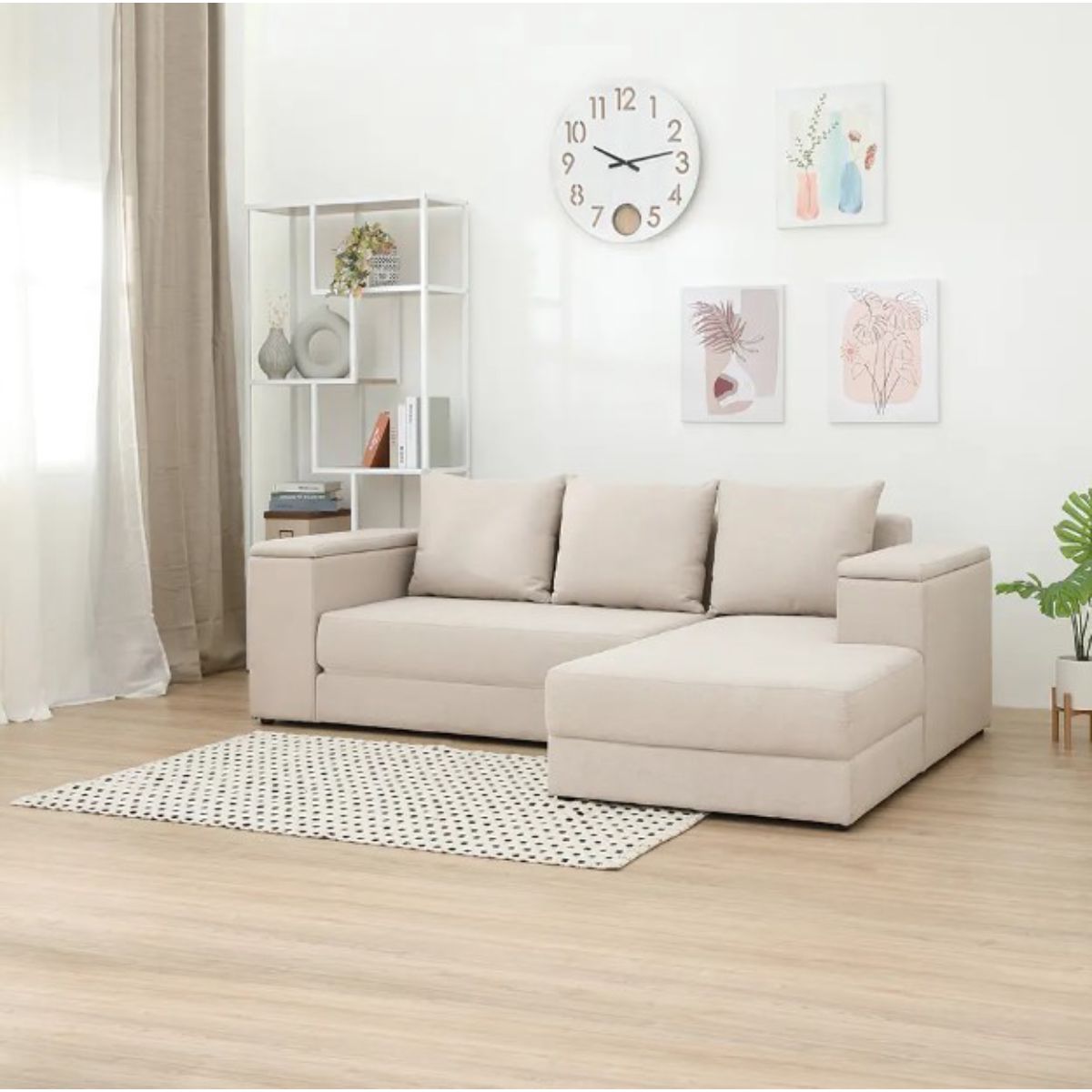 ตามหาโซฟาที่ใช้งานได้แบบมัลติฟังก์ชัน ต้องยกให้โซฟาผ้าปรับนอน L-shape รุ่นสตีเฟ่น ขนาด กว้าง 230 x ลึก 160 x สูง 80 ซม. โครงสร้างทำจากไม้เนื้อแข็ง แข็งแรง ทนทาน รับน้ำหนักได้มากถึง 110 กก./ที่นั่ง ภายในบุด้วยฟองน้ำอย่างดี หุ้มด้วยผ้าโพลีเอสเตอร์ 100% ให้สัมผัสนุ่ม นั่งสบาย มาพร้อมดีไซน์สีน้ำตาลอ่อนสุดละมุน แต่งบ้านได้บรรยากาศที่อบอุ่น สไตล์ Cozy ปรับนอนได้สะดวก แถมในส่วนที่วางแขน 2 ฝั่งยังสามารถเปิด-ปิด ใช้งานเป็นที่เก็บของได้อีกด้วย