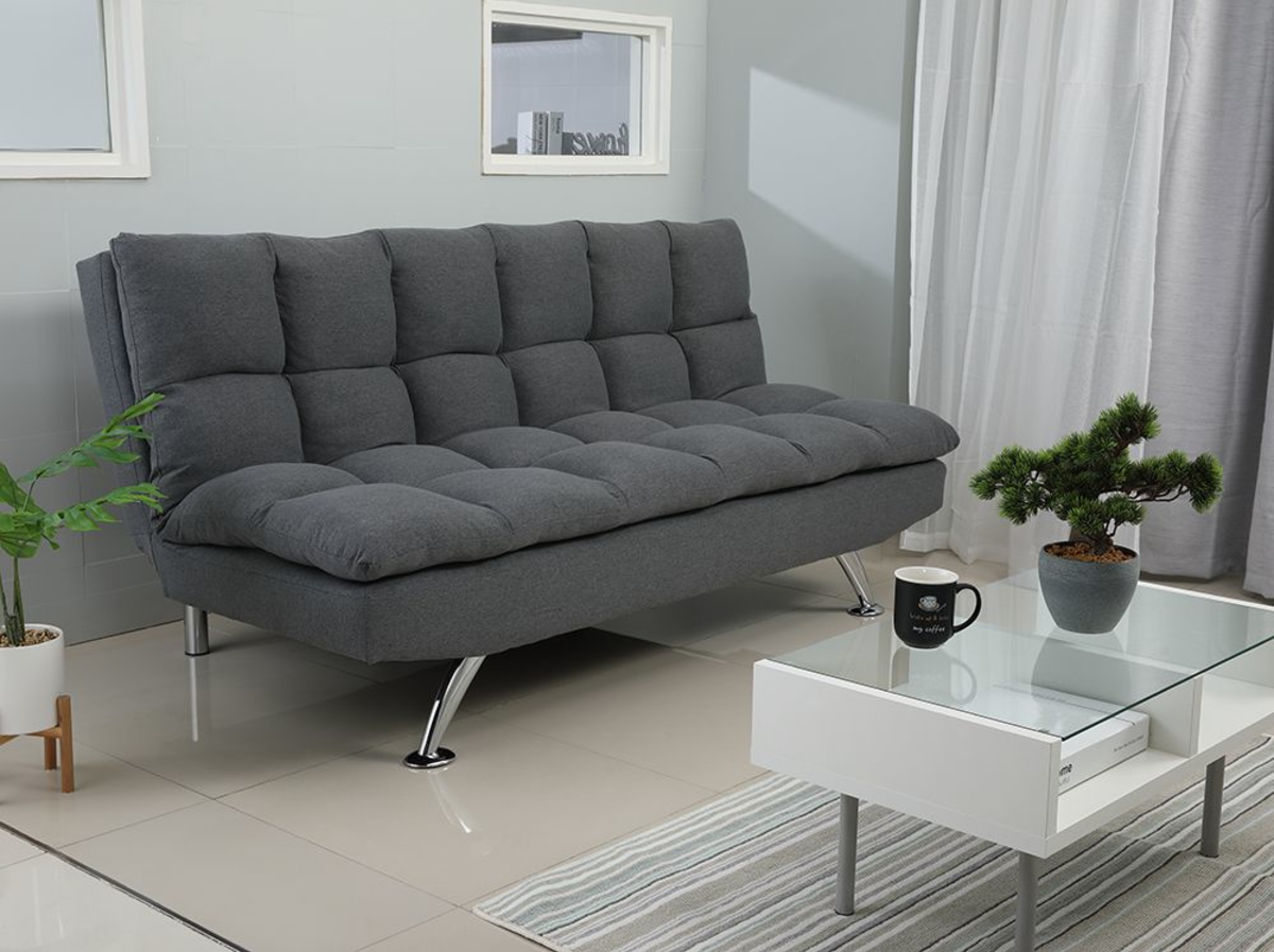 โซฟาผ้า 3 ที่นั่ง รุ่นเวนดี้ มากับฟังก์ชันสุดคุ้มปรับเอนเป็นเตียงใหญ่ได้ พร้อมเบาะนั่งที่บุด้วยโฟมโพลียูรีเทน นุ่มสบาย นั่งแล้วคืนตัวดี ไม่ยุบง่าย โครงสร้างทำจากไม้เนื้อแข็ง ใช้งานได้ยาวนาน ดีไซน์โทนสีเทาเข้มดูโมเดิร์นตัดกับขาเหล็กผิวมันวาว เรียบง่าย ดูทันสมัย ใต้โซฟาเป็นแบบโปร่งโล่ง ทำให้ห้องดูกว้าง สบายตา จะนั่งก็สบาย จะนอนก็ฟิน