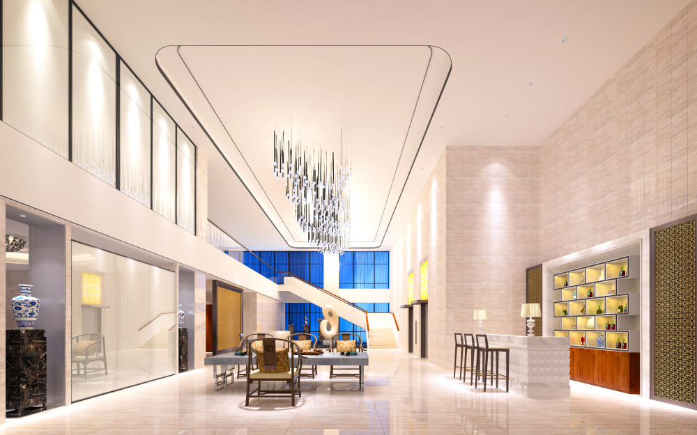 ไอเดียตกแต่งโซนล็อบบี้โรงแรมที่ผสานระหว่างสไตล์โมเดิร์นกับกลิ่นอายศิลปะตะวันออก ด้วยโทนสีที่อบอุ่น เฟอร์นิเจอร์ที่หรูหรา และแชนเดอเลียร์ดีไซน์ล้ำรับกับเพดานสูงโปร่ง เสริมด้วยเก้าอี้ไม้ลวดลายคลาสสิกตัดกับพื้นหินอ่อน ช่วยสร้างบรรยากาศที่เรียบหรู เหมาะกับการถ่ายรูปโพสต์ลงโซเชียลเพื่อกระตุ้นยอดจองห้องพัก