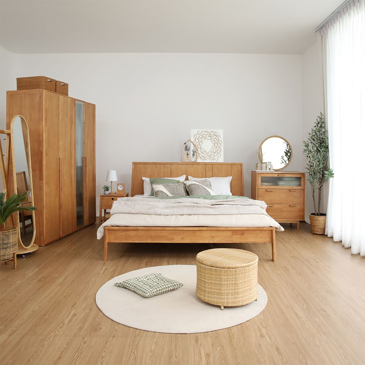เตียง Wasabi จาก INDEX LIVING MALL ผลิตจากไม้ยางพาราแท้ 100% แต่ละชิ้นมีลายไม้เฉพาะตัว เพิ่มเสน่ห์ไม่ซ้ำใคร เหมาะมากสำหรับโรงแรม รีสอร์ต หรือที่พักที่อยากสร้างบรรยากาศอบอุ่น สบายตาในสไตล์มินิมอลนอร์ดิก ขนาดเตียงกว้าง 6 ฟุต นอนสบาย เข้ากับห้องพักโทนเรียบๆ ให้ถ่ายรูปออกมาสวยถูกใจสาย Instagram