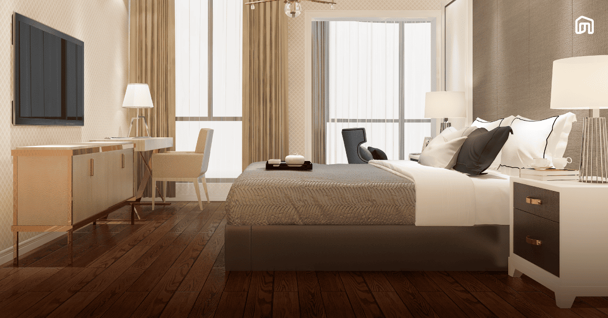 ตกแต่งห้องพักโรงแรมในสไตล์ Modern Luxury เชื่อมโยงเฟอร์นิเจอร์ดีไซน์สวย ผ่านการเลือกใช้วัสดุคุณภาพสูง อย่างผ้ากำมะหยี่ หนังสังเคราะห์ และพื้นไม้ เพื่อเสริมลุคความพรีเมียม พิเศษด้วยเตียงนอน พรมผืนใหญ่ เก้าอี้ดีไซน์สวย และไฟซ่อนที่ช่วยให้ห้องดูมีมิติ ผสานโทนสีน้ำตาล สีเทา และสีทอง ถือเป็นการตกแต่งห้องพักโรงแรมที่เน้นฟังก์ชันควบคู่ไปกับการออกแบบที่ตอบรับการถ่ายรูปให้ออกมาสวยพร้อมลงโซเชียลได้เลย