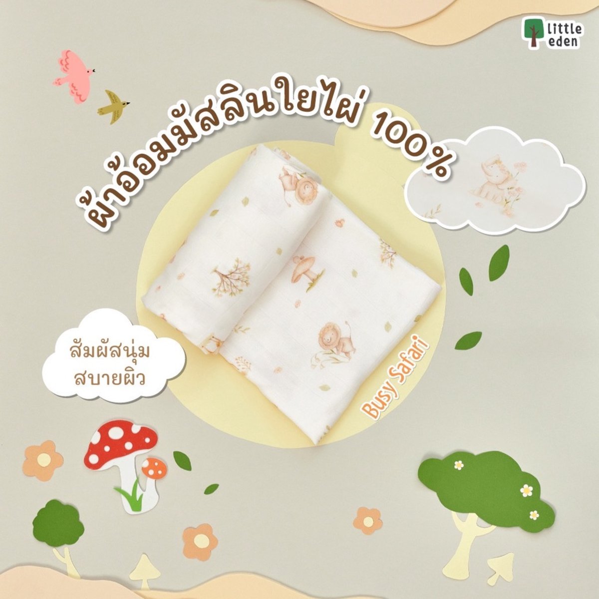 2. ผ้าอ้อมมัสลินใยไผ่ 100% จาก Little Eden สัมผัสละมุนผิว อ่อนโยนต่อลูกน้อย