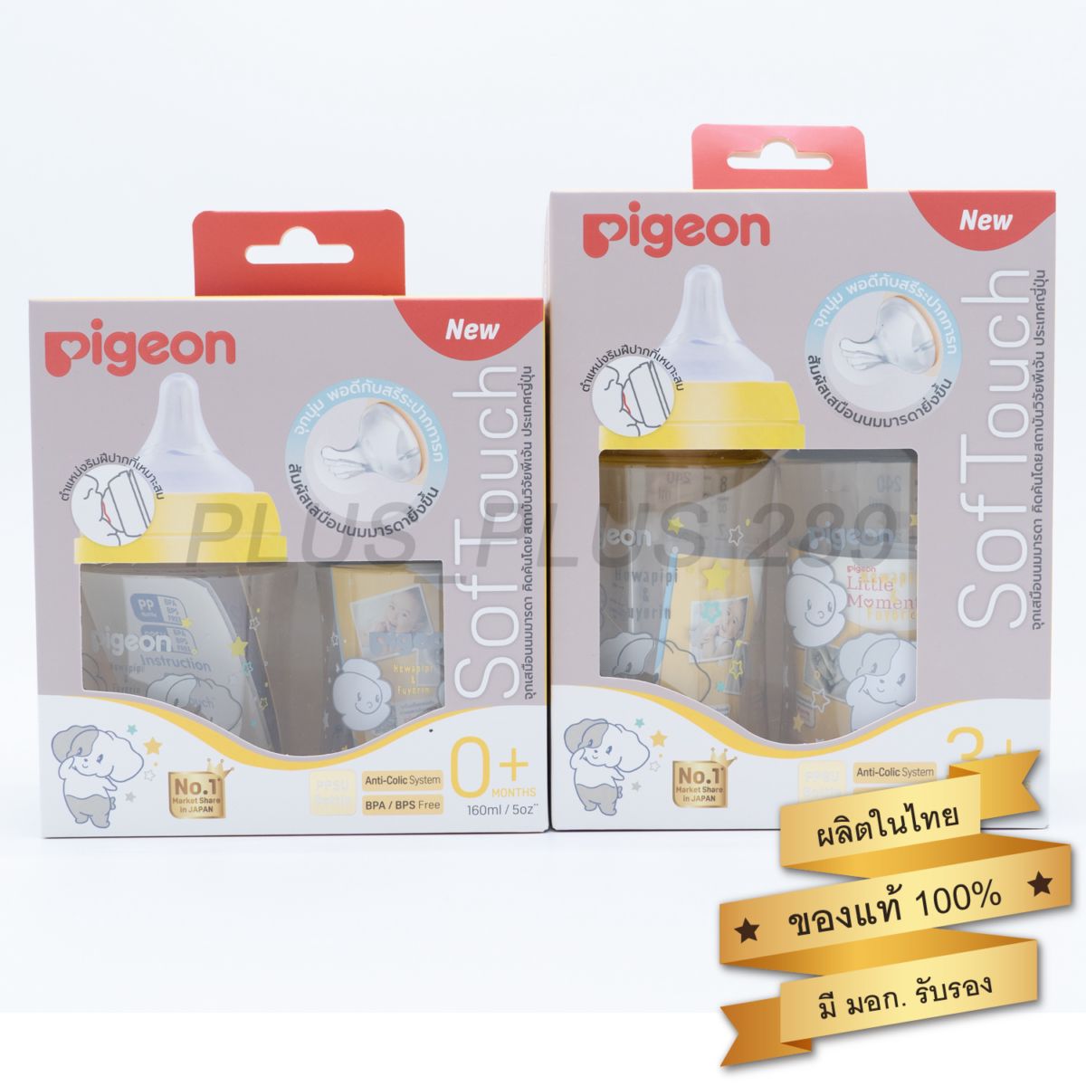 4. ขวดนมสีชาแพ็คคู่ ลาย Howapipi & Fuyarin จาก Pigeon จุก SoftTouch อ่อนนุ่ม ทนความร้อนสูง