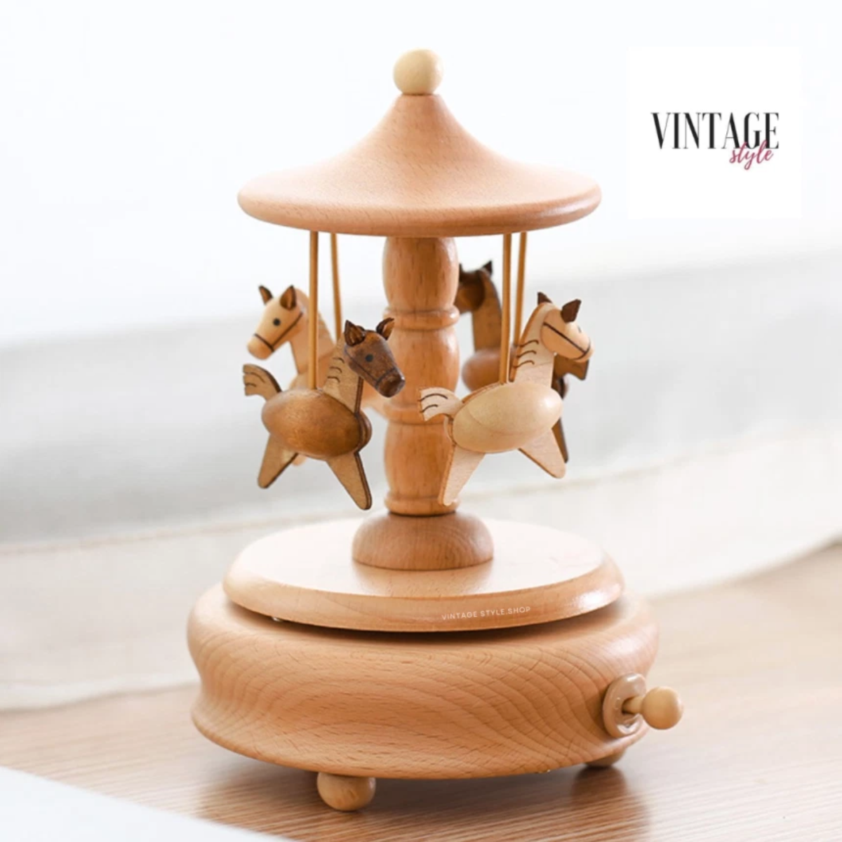 ของขวัญรับหลานที่น่ารัก กล่อมให้เจ้าตัวเล็กนอนหลับฝันดี ต้องกล่องดนตรีไม้ จาก Vintage style studio ผลิตจากไม้บีชแท้ แข็งแรง ทนทาน เพียงหมุนไขลาน ก็ทำให้หลานเคลิบเคลิ้มไปกับเสียงดนตรีจากเพลง Castle in the sky ที่ไพเราะ แถมดีไซน์เป็นม้าหมุนสุดน่ารัก มินิมอล ใช้เป็นของตกแต่งห้องเจ้าตัวน้อยได้อีกด้วย