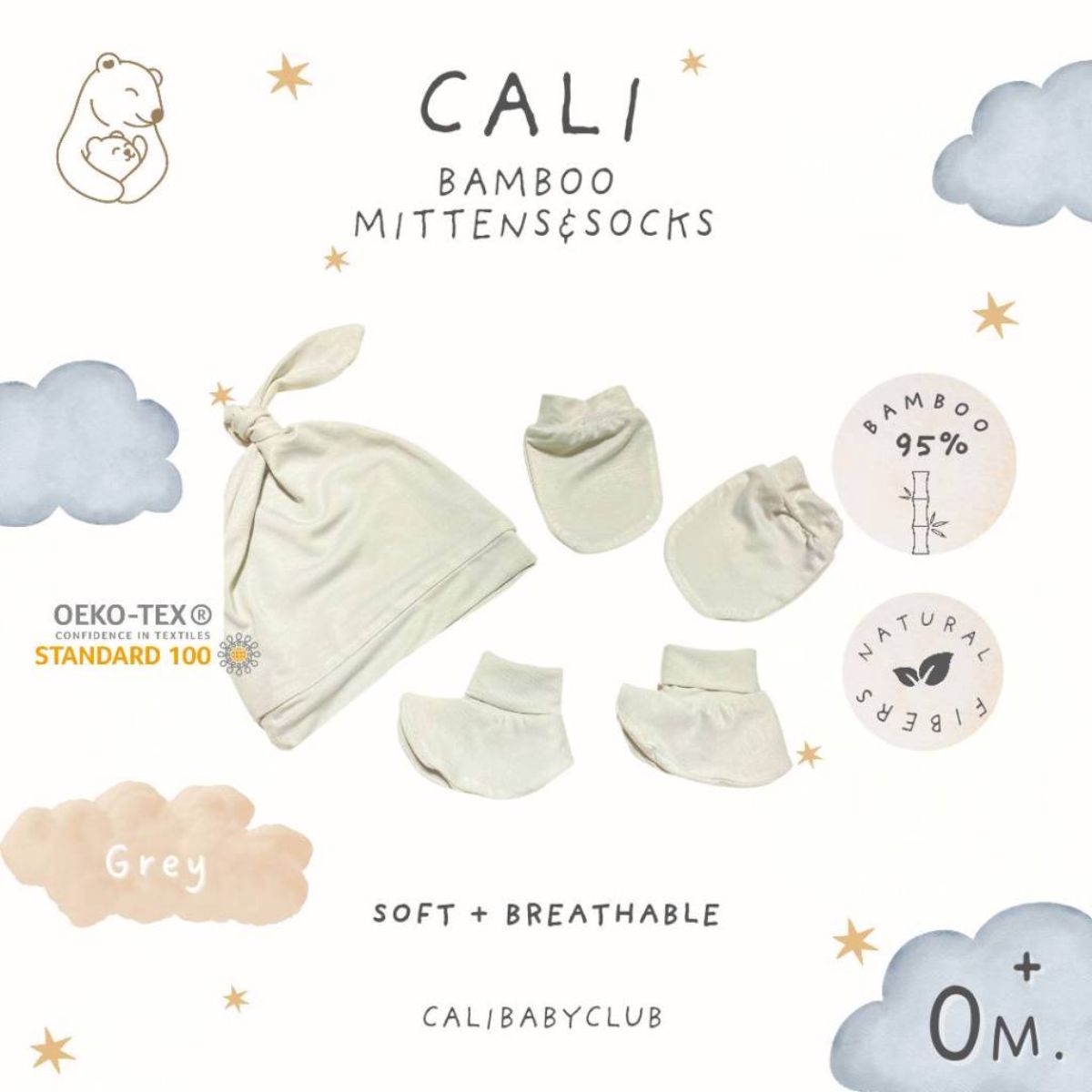 ส่งผ่านความใส่ใจด้วยของขวัญรับขวัญหลานชาย หลานสาวตัวน้อย อย่างเซตหมวกและถุงมือถุงเท้า จาก Cali เหมาะกับหลานอายุ 0-3 เดือน ผลิตจากผ้าใยไผ่ 95% และผ้าสแปนเด็กซ์ 5% สัมผัสเย็นสบาย ระบายอากาศได้ดี มาพร้อม 3 สีพาสเทลสุดคิวต์ ทั้งสีเทาอ่อน สีน้ำตาลอ่อน และสีชมพูอ่อน ให้เจ้าตัวเล็กอบอุ่นและนอนหลับสบายยิ่งขึ้น
