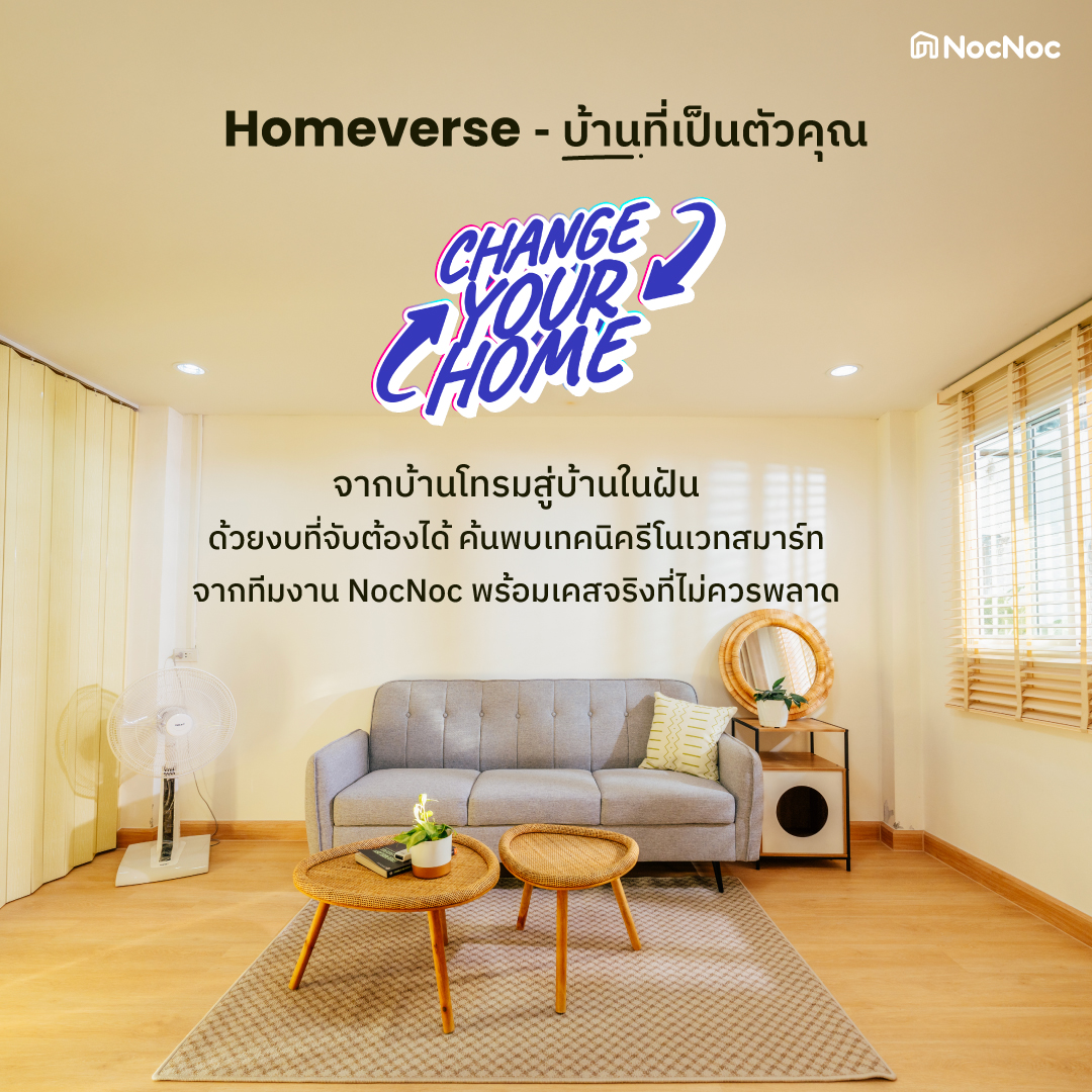 Change your home รายการ NocNoc ที่จะมามอบสาระดีๆ เกี่ยวกับการรีโนเวทบ้าน ตอบโจทย์คนที่อยากเปลี่ยนบ้านโทรมสู่บ้านสวยในฝันในงบไม่บานปลาย พร้อมแชร์เทคนิคที่เข้าใจง่าย จากทีมงาน NocNoc ผ่านเคสจริง มาให้ดูกันแบบละเอียดทุกขั้นตอน
