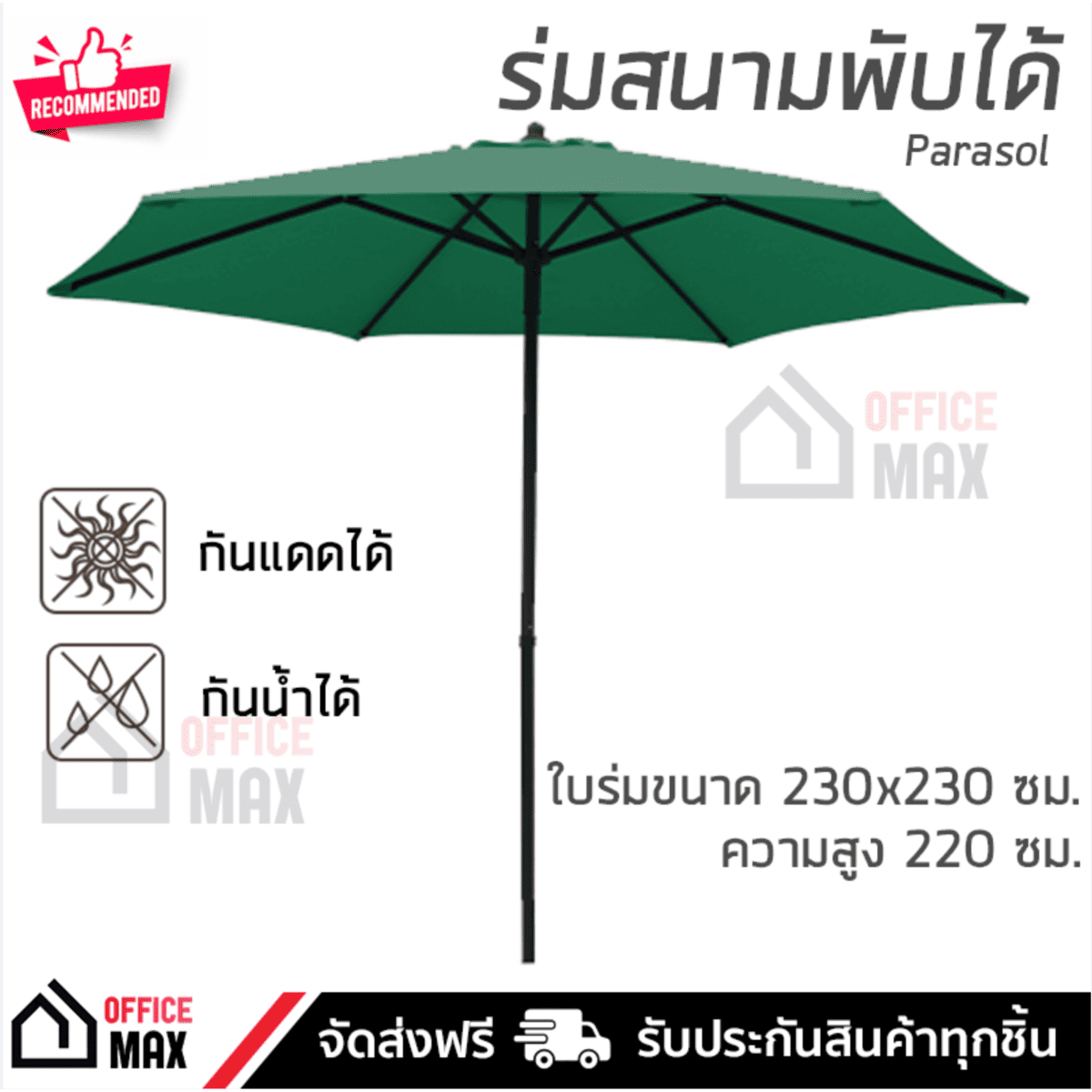 - ความสูง 230 ซม. ขนาดกำลังพอเหมาะ ป้องกันแดดได้ครอบคลุมบริเวณโดยรอบ
