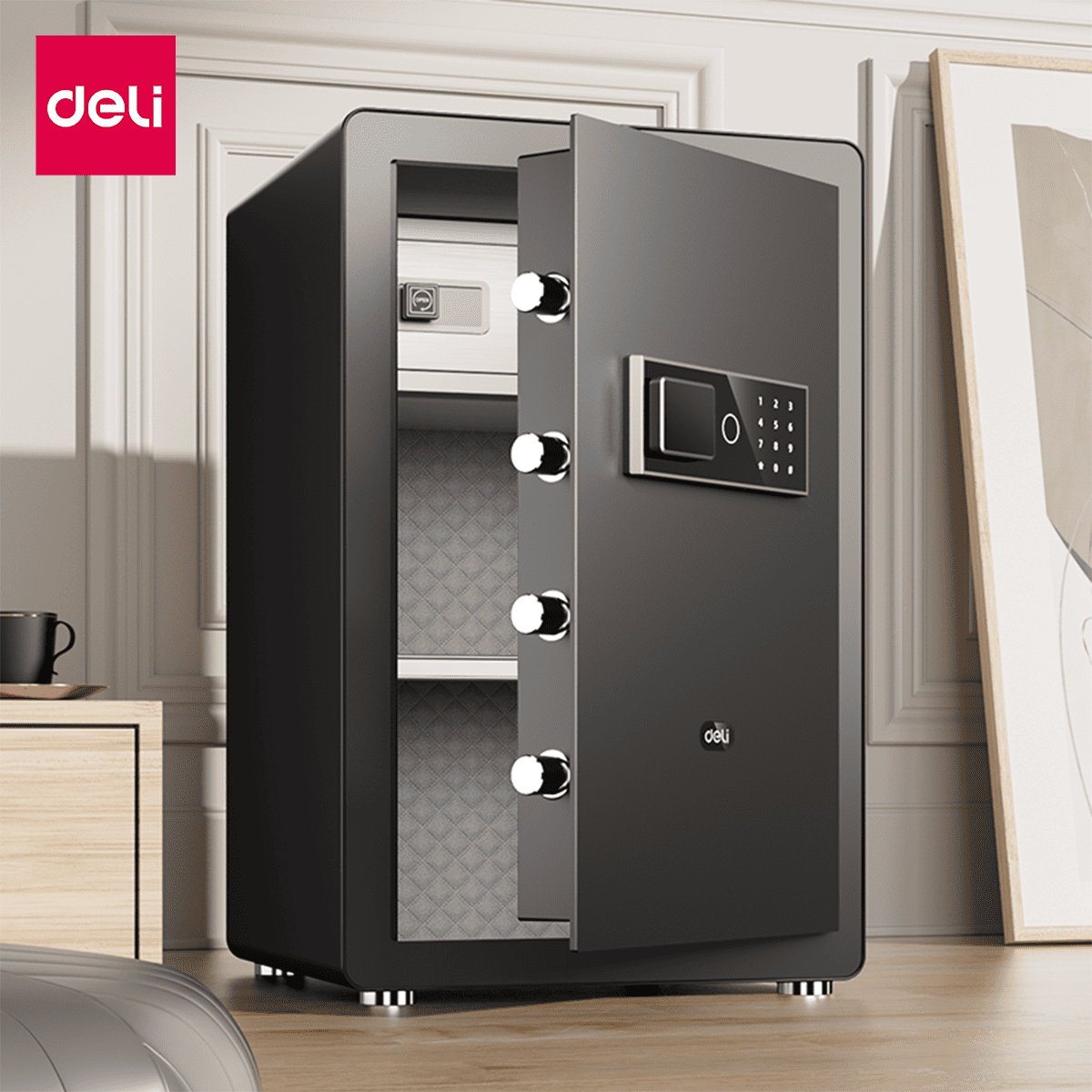 ตู้เซฟนิรภัย รุ่น ET572 จาก Deli ดีไซน์เรียบหรู สวยงาม โครงสร้างผลิตจากเหล็กคาร์บอนเคลือบฟอสเฟต แข็งแรงสูง ไม่เป็นสนิม แผงประตูหนาพิเศษถึง 6 มม. ป้องกันการถูกงัดแงะจากเหตุโจรกรรม ภายในหุ้มด้วยผ้านาโน ให้สัมผัสอ่อนนุ่ม ปกป้องทรัพย์สินจากรอยขีดข่วน มาพร้อมแผงควบคุมแบบมัลติฟังก์ชัน ทั้งปุ่มกดระบบสัมผัส ไฟแสดงสถานะ รวมถึงเสียงแจ้งเตือนเมื่อใส่รหัสผิด หรือมีการสั่นสะเทือน วางใจหายห่วง รับรองของไม่หาย