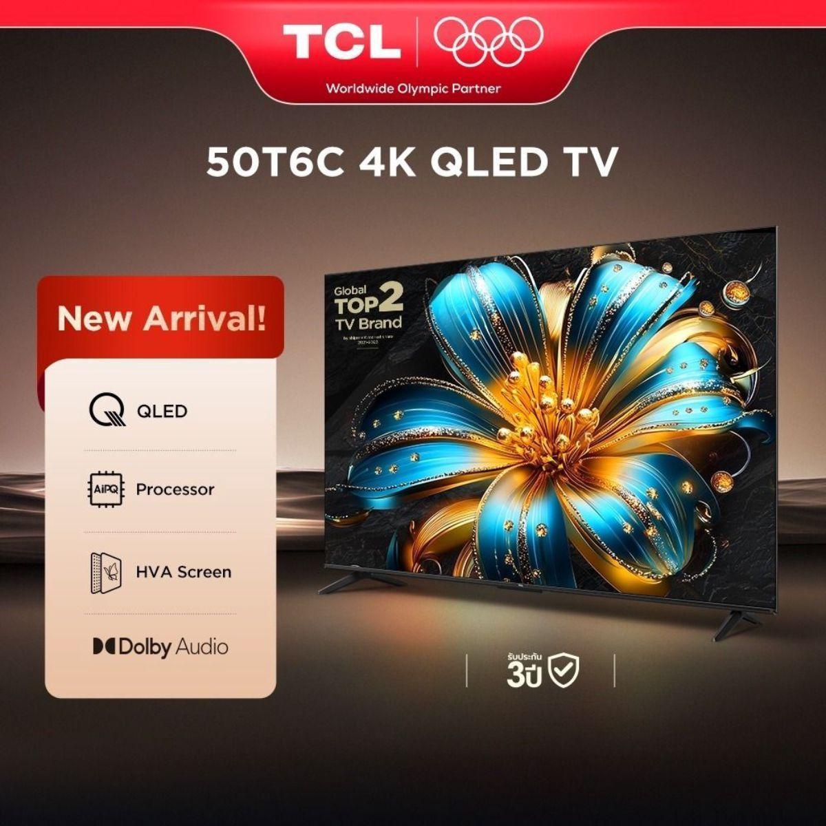 ดื่มด่ำกับความบันเทิงเหนือระดับไปกับทีวี TCL T6C 4K QLED Google TV มีขนาดทั้ง 50 และ 65 นิ้ว ดีไซน์ล้ำสมัยแบบไร้ขอบ Metallic Bezel-less ดูรายการโปรดได้แบบเต็มจอ มาพร้อมเทคโนโลยี QLED Colorful Quantum Crystal ถ่ายทอดเฉดสีได้มากกว่า 1,000 ล้านสีผสานกับ HVA Screen ที่ให้คอนทราสต์สูง ภาพจึงคมชัด สมจริง และแม่นยำยิ่งขึ้น เพิ่มอรรถรสในการรับชมได้ทุกคอนเทนต์