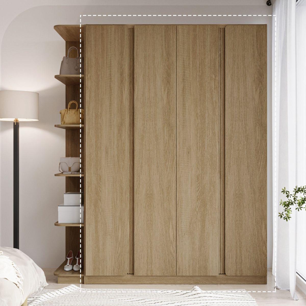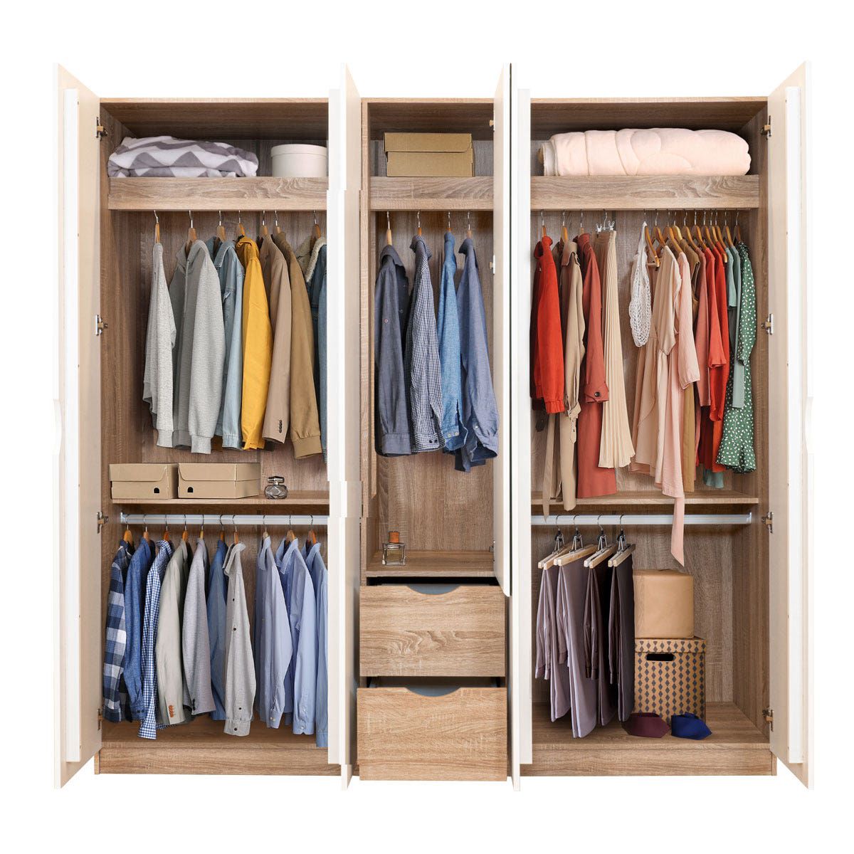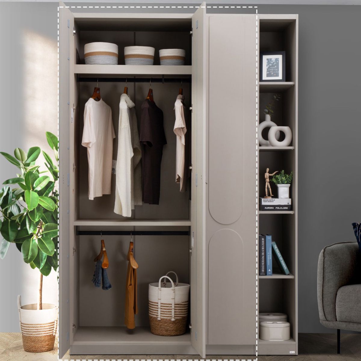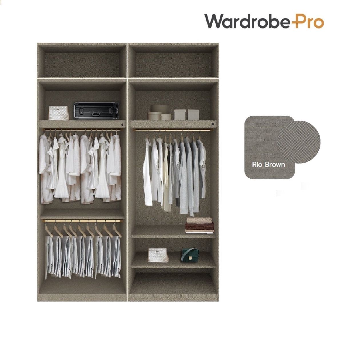 ต่อกันอีกรุ่นกับตู้เสื้อผ้า Wardrobe Plus ที่อัปเกรดความจุเพิ่มขึ้น มาพร้อมขนาดใหญ่พิเศษถึง 300 ซม. เก็บของได้แบบไม่ต้องกลัวล้น ภายในมีราวแขวนเสื้อผ้า 5 ช่องและชั้นเก็บของอีก 5 ช่อง จัดของได้ครบทุกหมวด ทั้งเสื้อผ้า กระเป๋า หรือของใช้ส่วนตัว ดีไซน์โทน Rio Brown ตัดขาว เรียบหรูแต่ดูอบอุ่น เข้ากับทุกสไตล์การตกแต่งห้องได้อย่างลงตัว